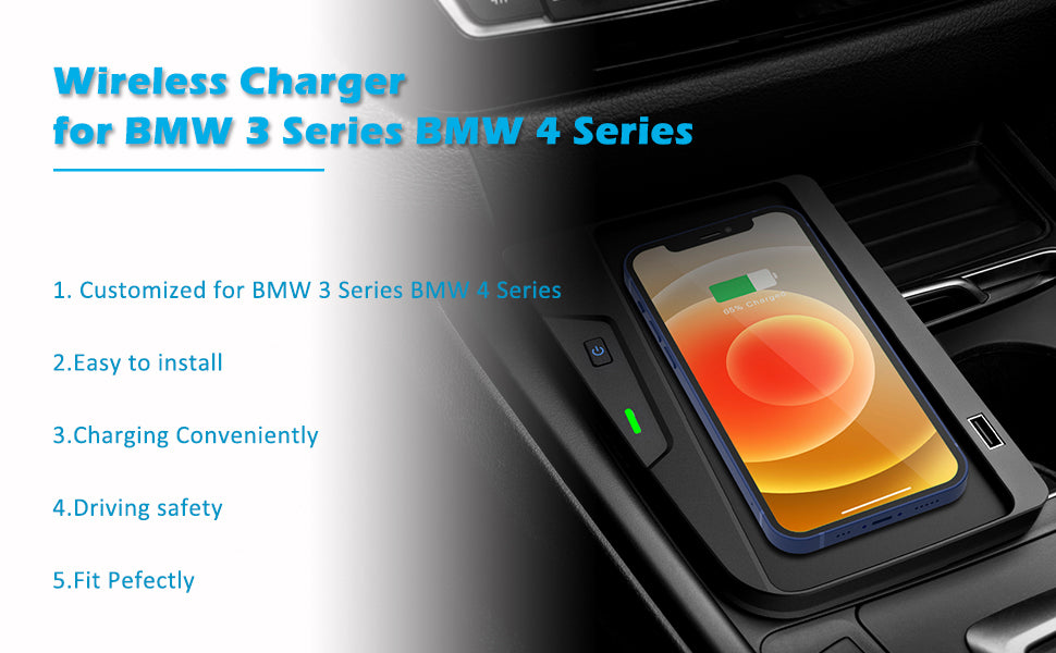 CarQiWireless patent design, only for BMW 3 Series 2016-2018 4 Series 2018-2020. Early reviewer needed, send your BMW 3 Series or 4 Series center console area picture to confirm you are a real BMW 3 Series or 4 Series owner to pd@carqiwireless.com. Limited free wireless charger only for first 20 BMW 3 Series or 4 Series owners. If you want to purchase from Amazon directly, search "Wireless Charger for BMW F30 CarQiWireless" or click this URL:https://amzn.to/2Rkw9qH